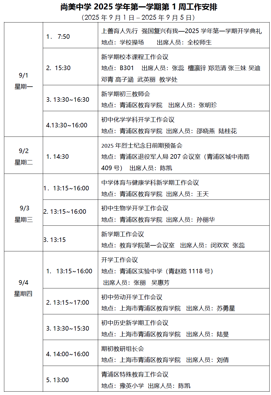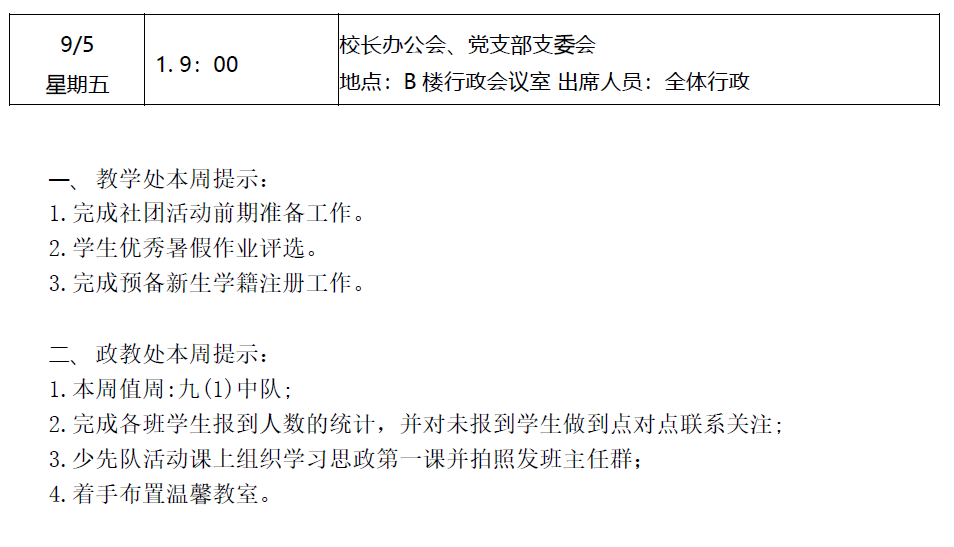 2025学年第一学期第1周工作安排