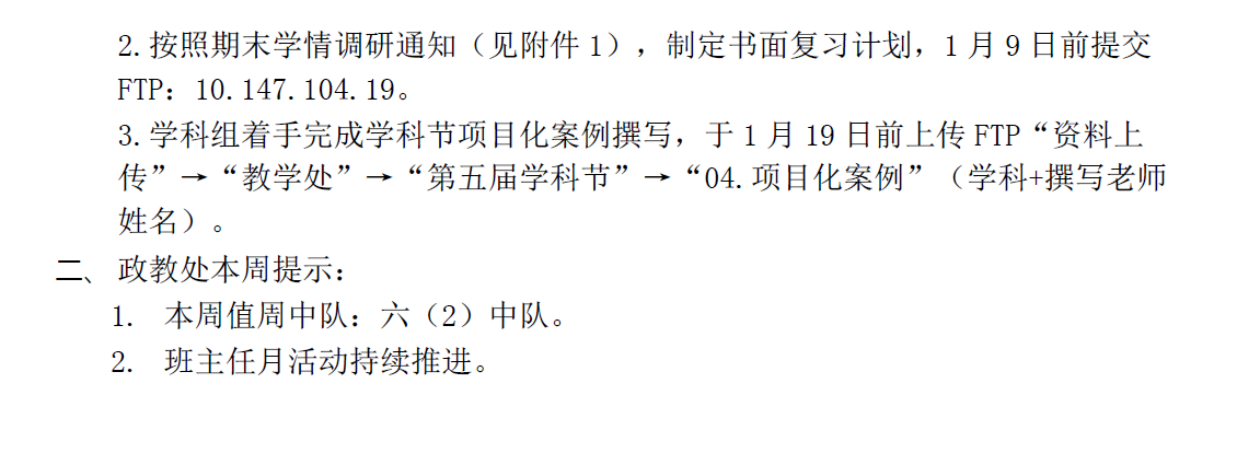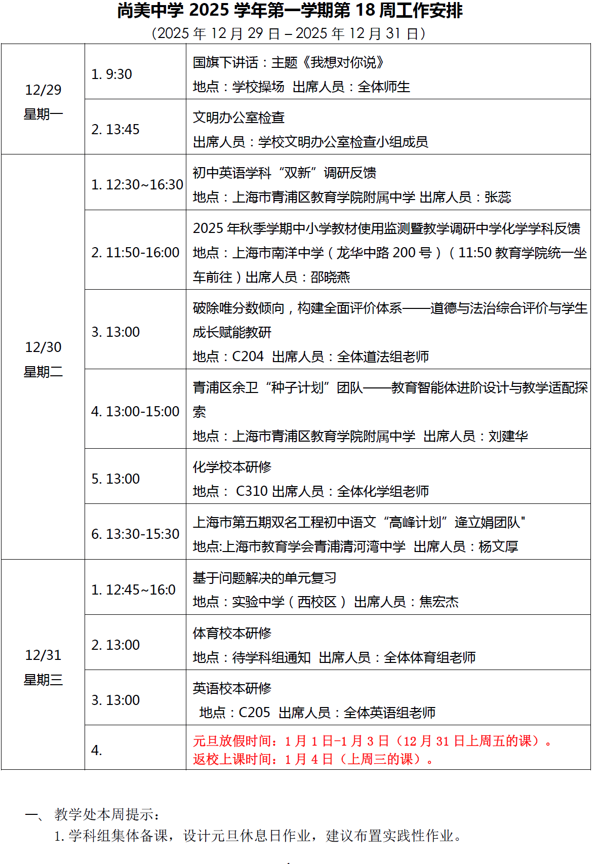 2025学年第一学期第18周工作安排