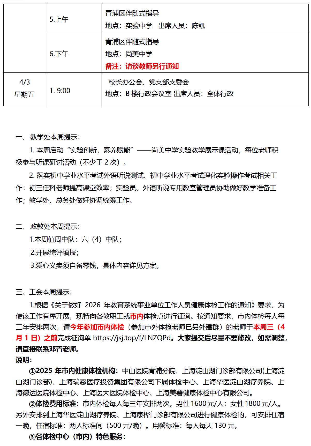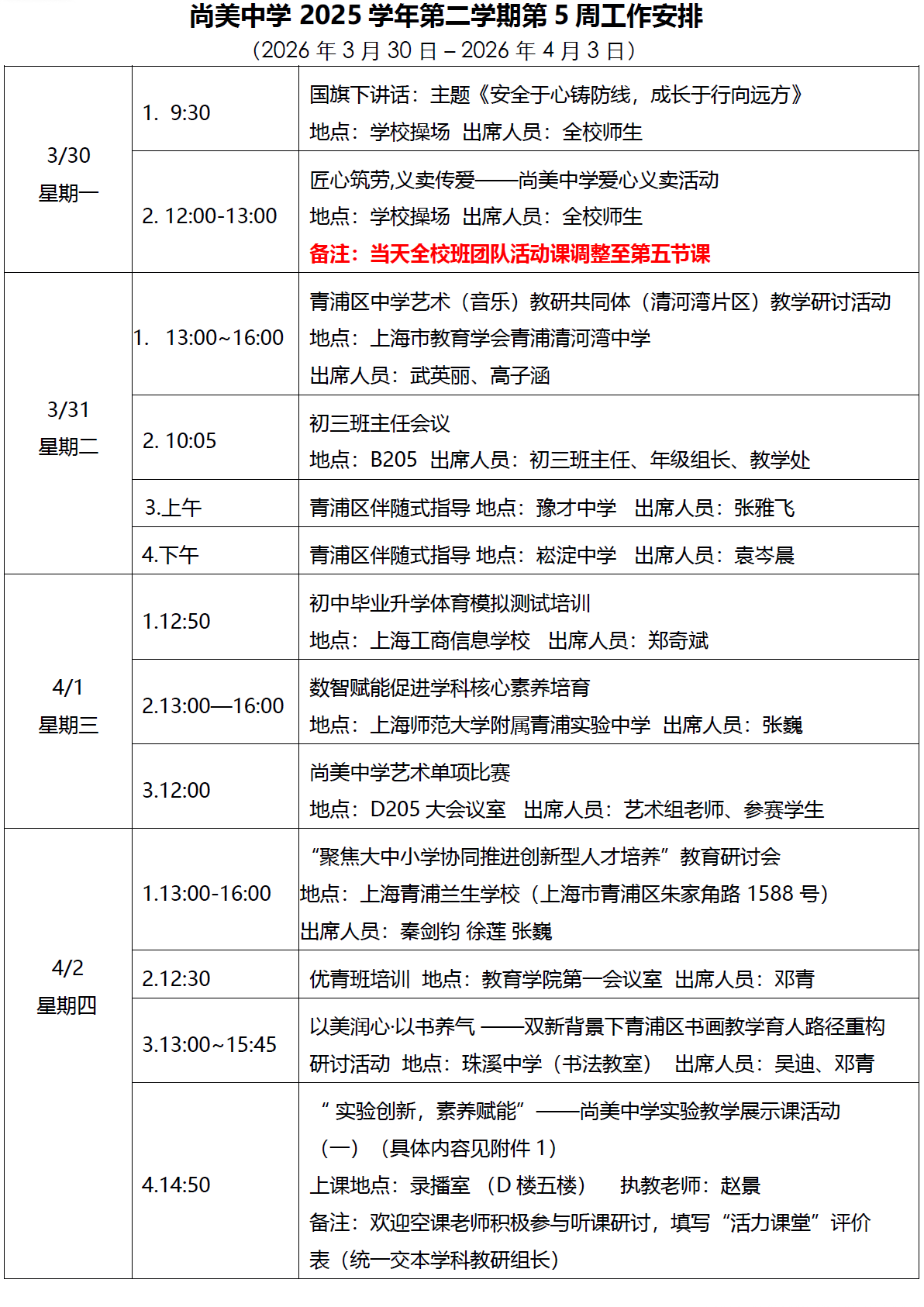 2025学年第二学期第5周工作安排