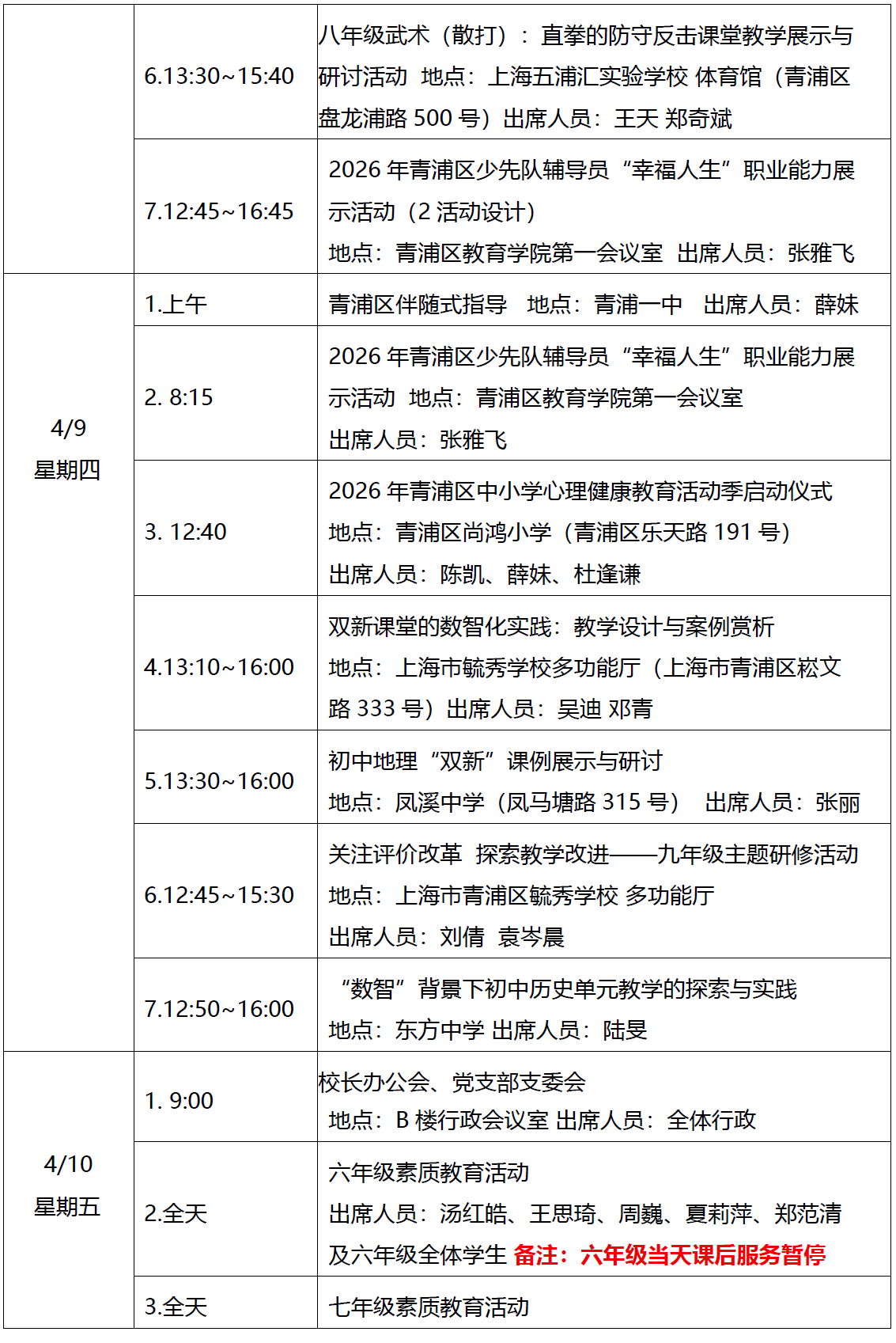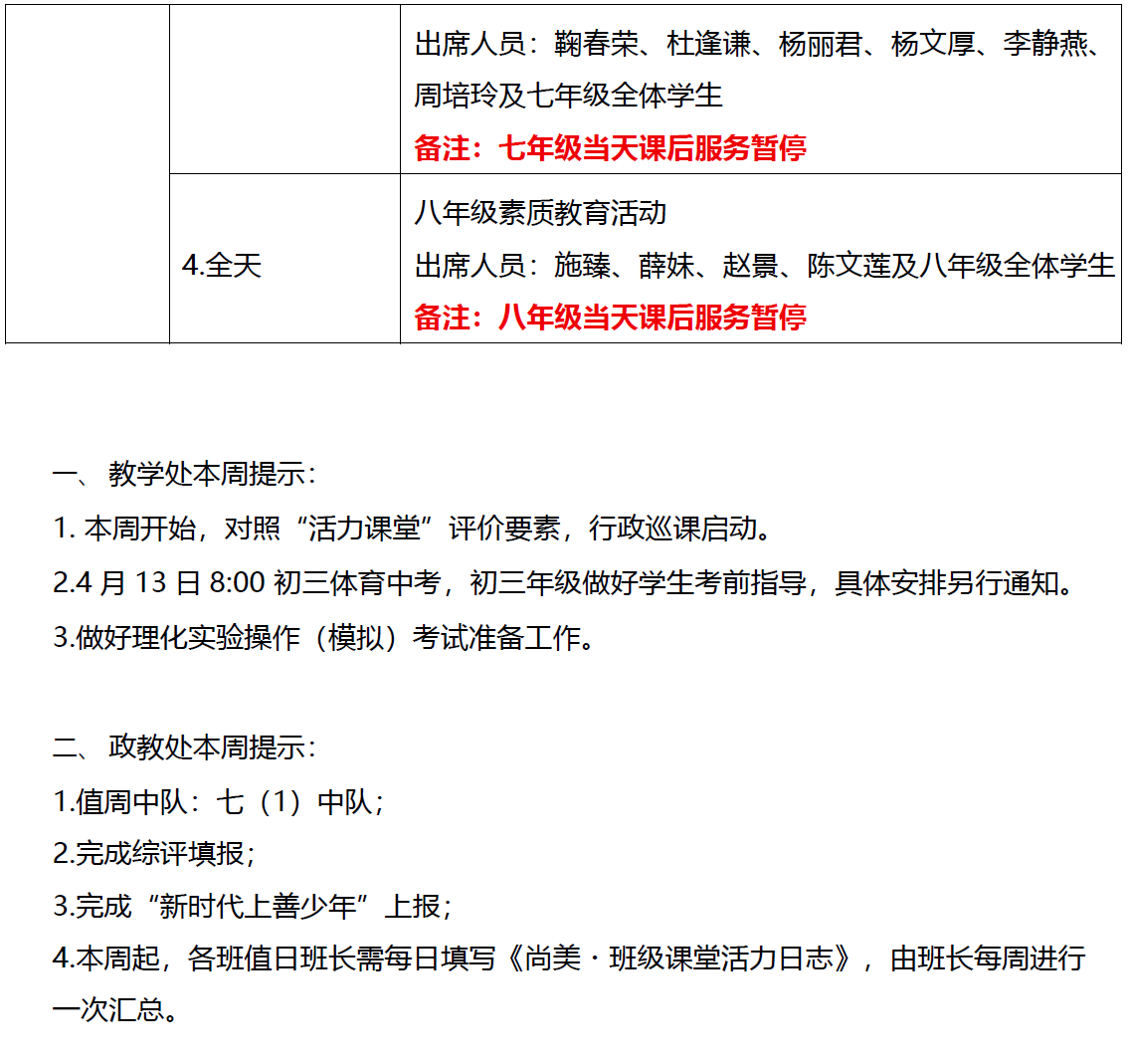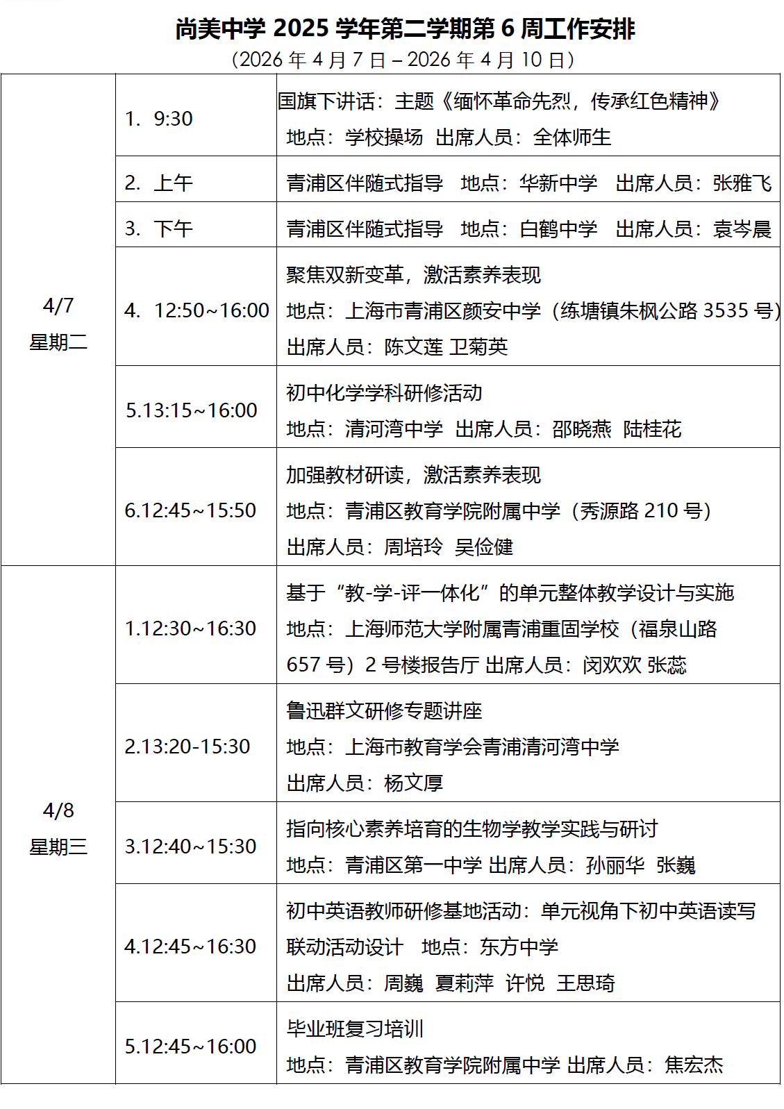 2025学年第二学期第6周工作安排