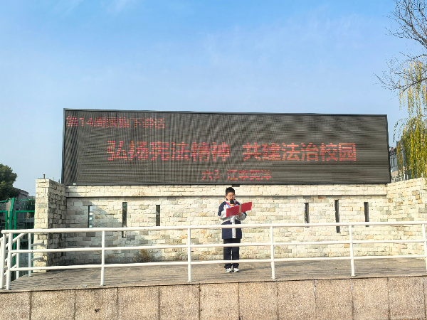 周一清晨,五星红旗冉冉升起,全校师生齐聚操场参加庄严的升旗仪式。来自六(3)班的江李奕洋同学以《弘扬宪法精神 共建法治校园》为题发表国旗下讲话。他用通俗易懂的语言阐释宪法的重要意义,结合校园生活实例讲述宪法与青少年成长的紧密联系,号召同学们从遵守校规校纪做起,将法治意识内化于心、外化于行,在全场师生心中播下尊崇宪法、践行法治的种子。